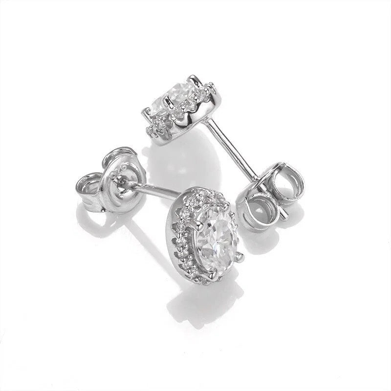 Oval-cut moissanite stud earrings crafted in 925 sterling silver with 18K gold plating. A timeless, minimalist sparkle for everyday wear.