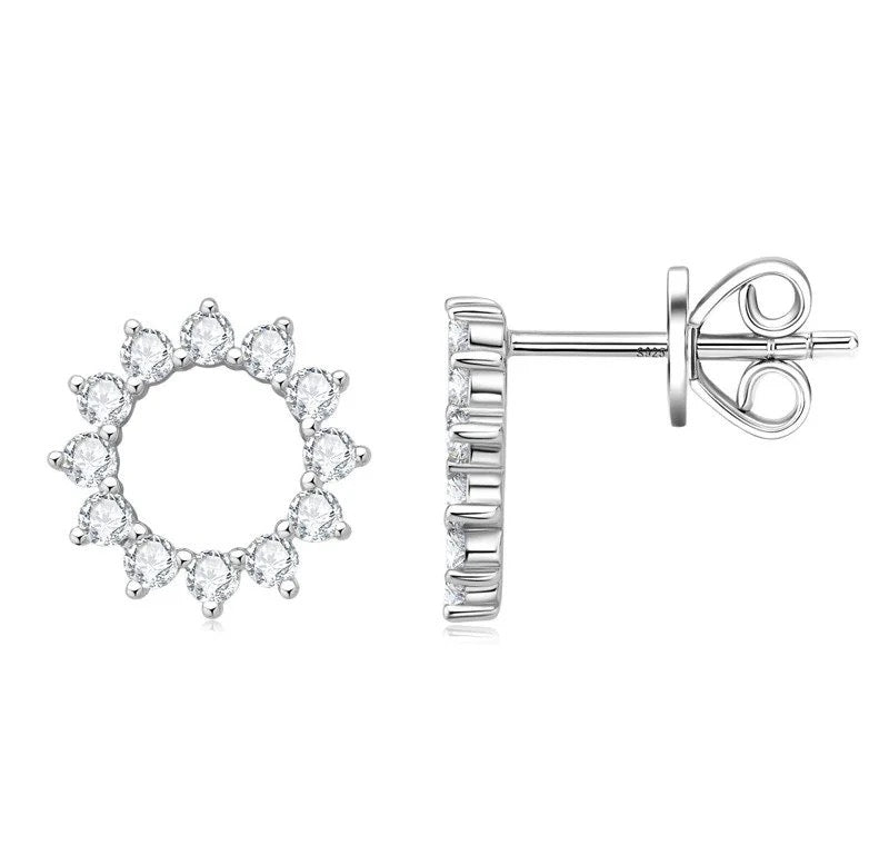 Radiant sunburst stud earrings crafted in 925 sterling silver, featuring sparkling moissanite simulated diamonds for brilliant everyday shine.