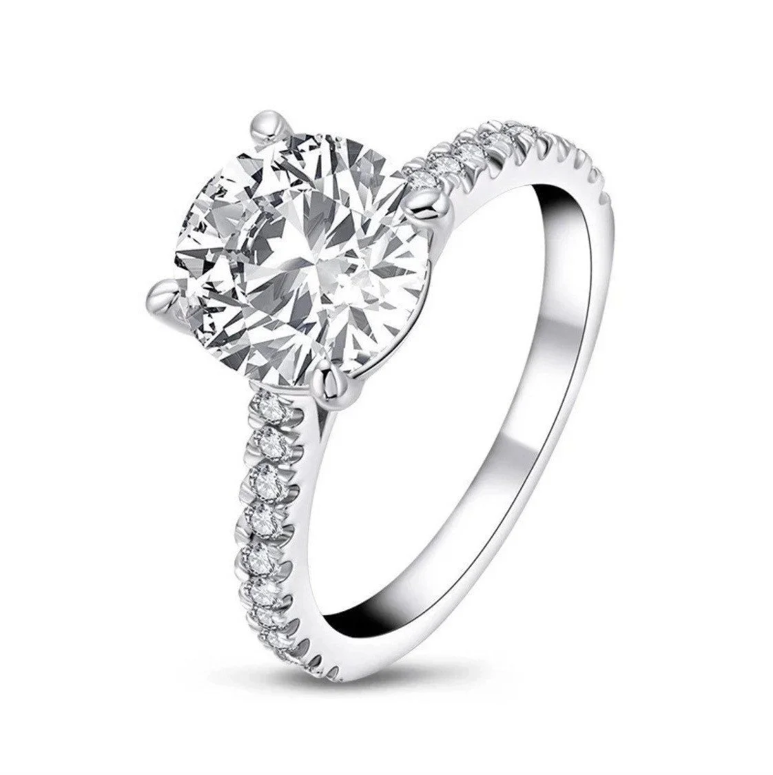 Main Diamond Size: 10x8MM (4 Carats)This beautiful sterling silver cushion cut Engagement ring is the perfect ring as an engagement ring, wedding ring, anniversary ring, promise ring, or a ring just to give that flashy look!